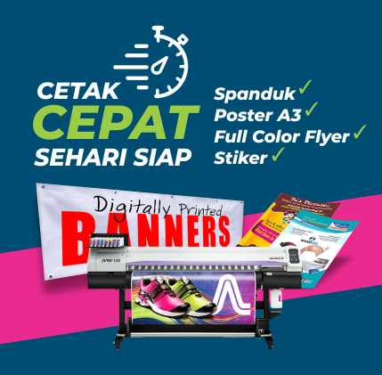 Siap membantu dalam mempromosikan bisnis anda dengan layanan cetak murah, berkualitas dan cepat. Melayani berbagai keperluan promosi seperti Spanduk, Banner, Kartu Nama, Stiker, Poster, Flyer, Brosur, Roll Baner, Y Baner, Huruf Timbul, Signage, Papan Nama, Laser Akrilik, Uv Print, Lanyard, Custom Souvenir, Stampel, Dll.